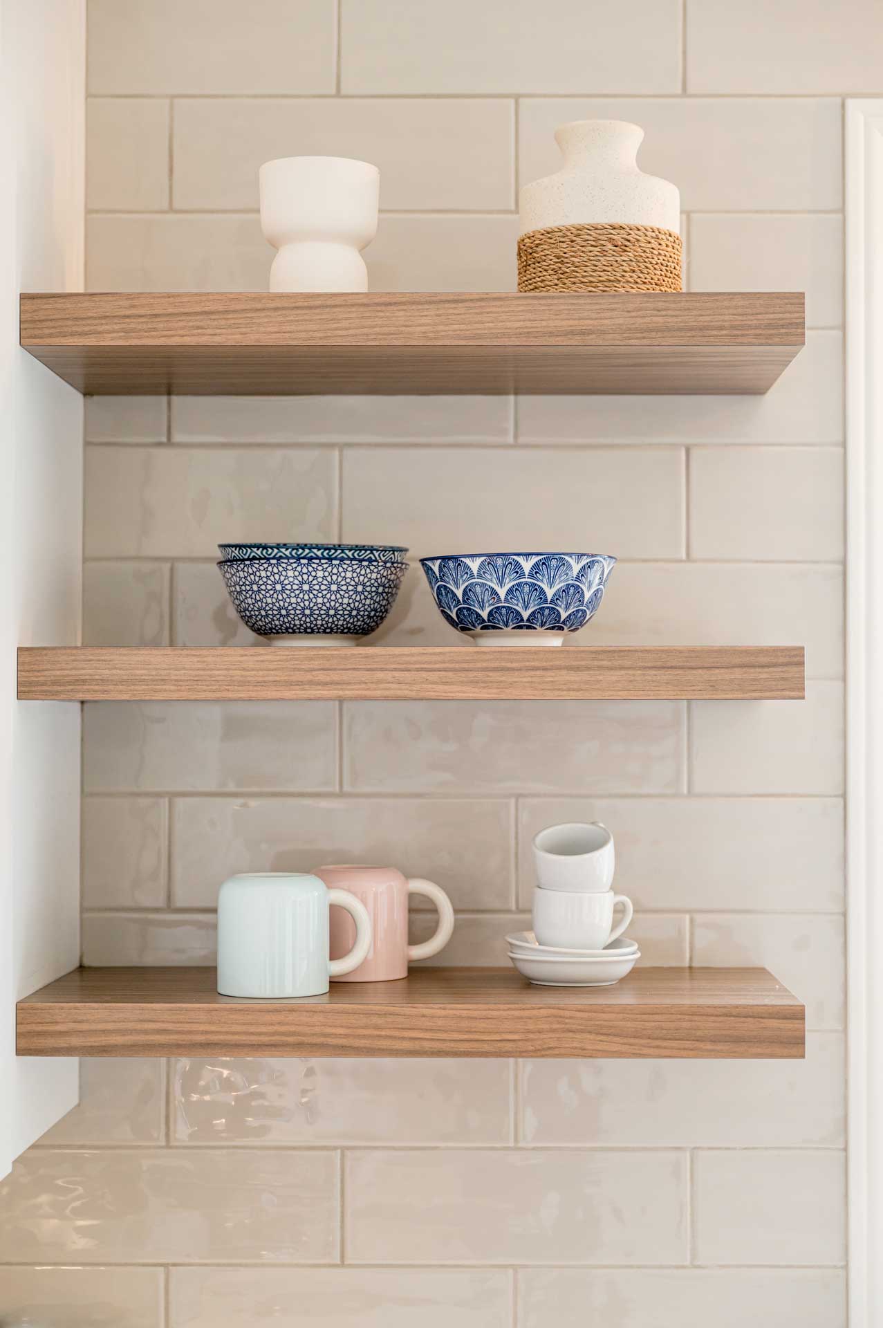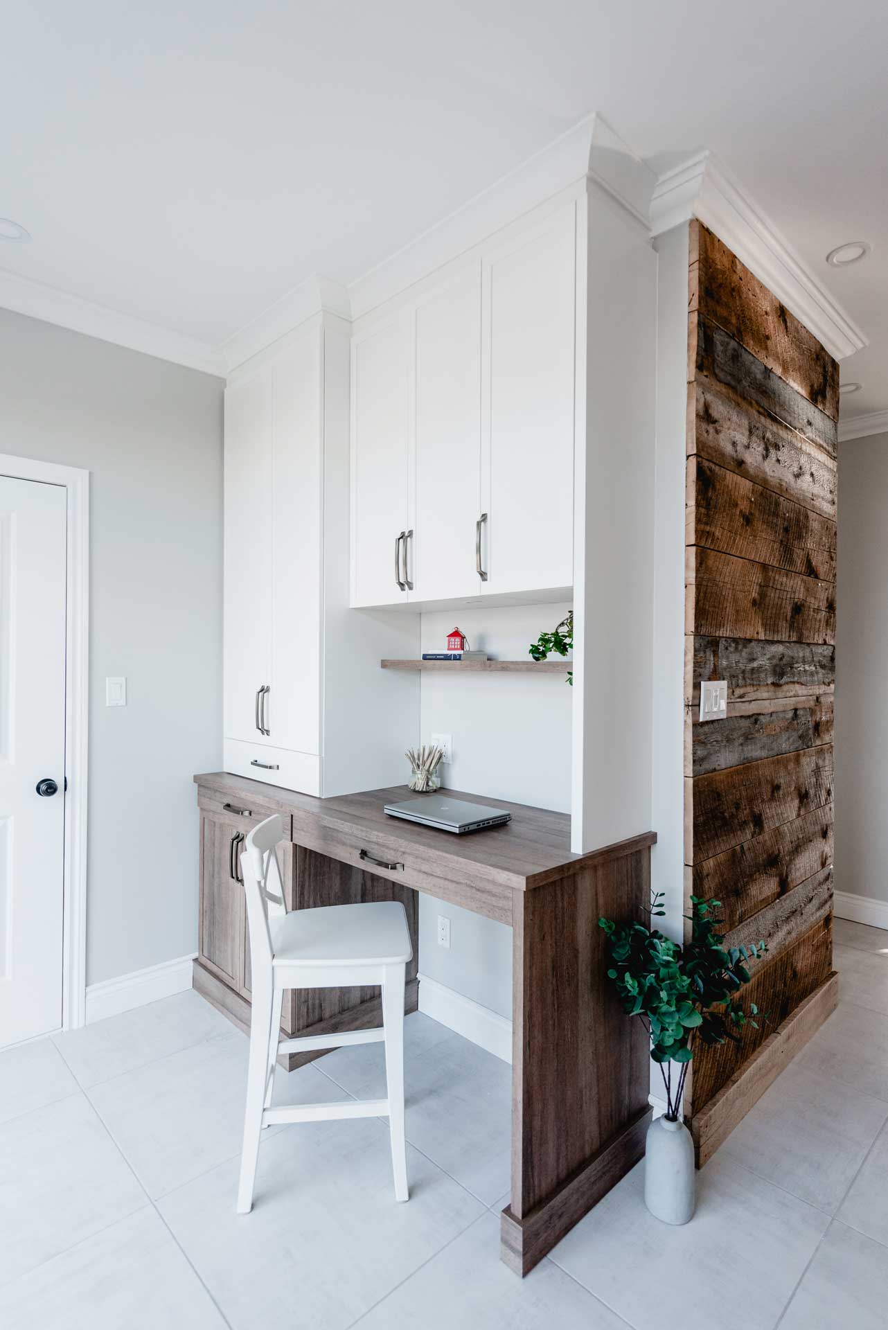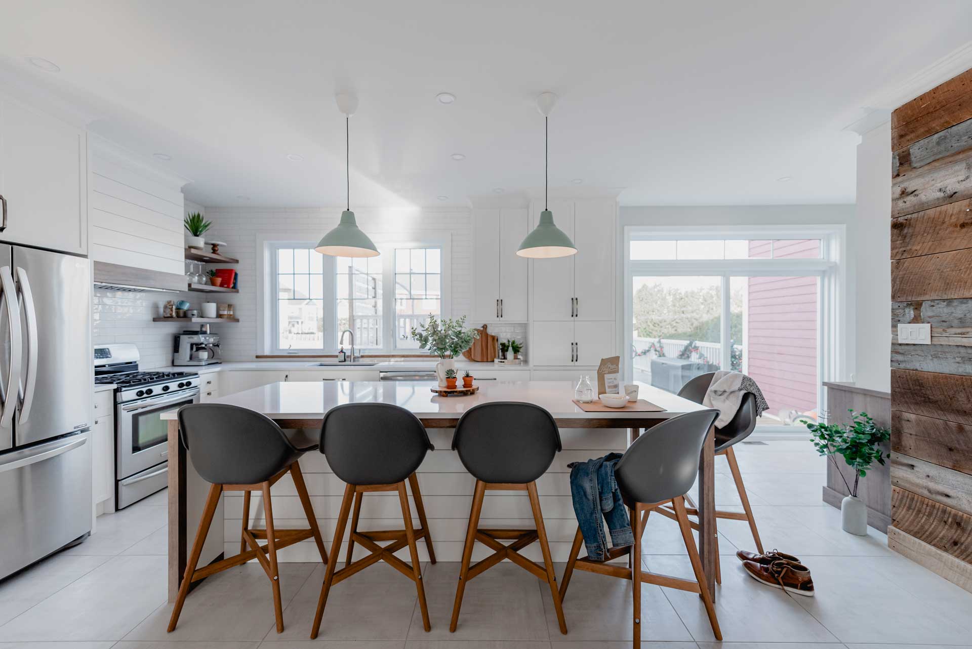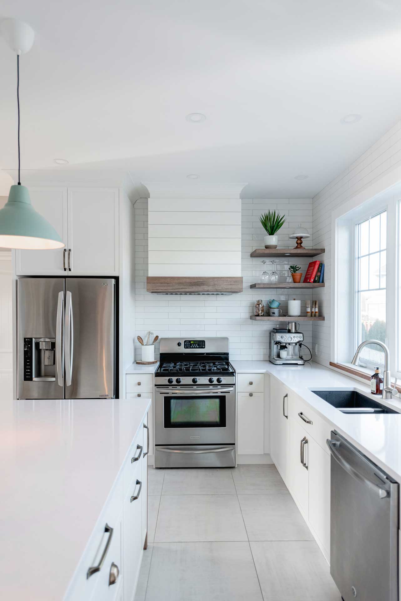 Cette cuisine tout en blanc séduit par sa simplicité élégante et son aménagement bien pensé. Les armoires sur mesure offrent un rangement optimal, tandis que les étagères flottantes en bois ajoutent une touche chaleureuse et actuelle. Un bel équilibre entre fonctionnalité, clarté et style.